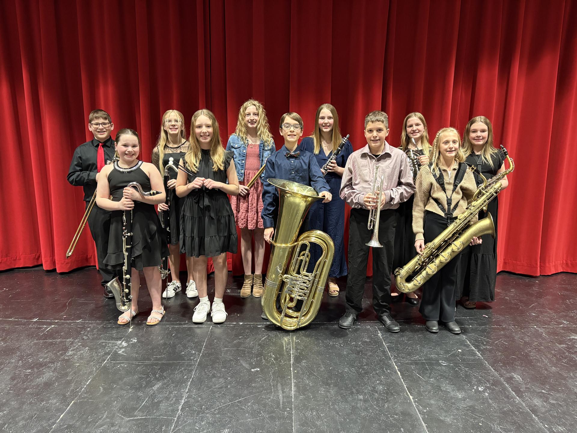 Seventeen members of the Algona Middle School Band were selected to participate in the Middles & Music Honor Band, which was held at the South Hamilton Middle & High School on Saturday, January 31. These talented musicians had their performance resumes submitted by their teachers, and the top students were chosen for the bands. The students spent the day in rehearsal in preparation for the evening concert. |