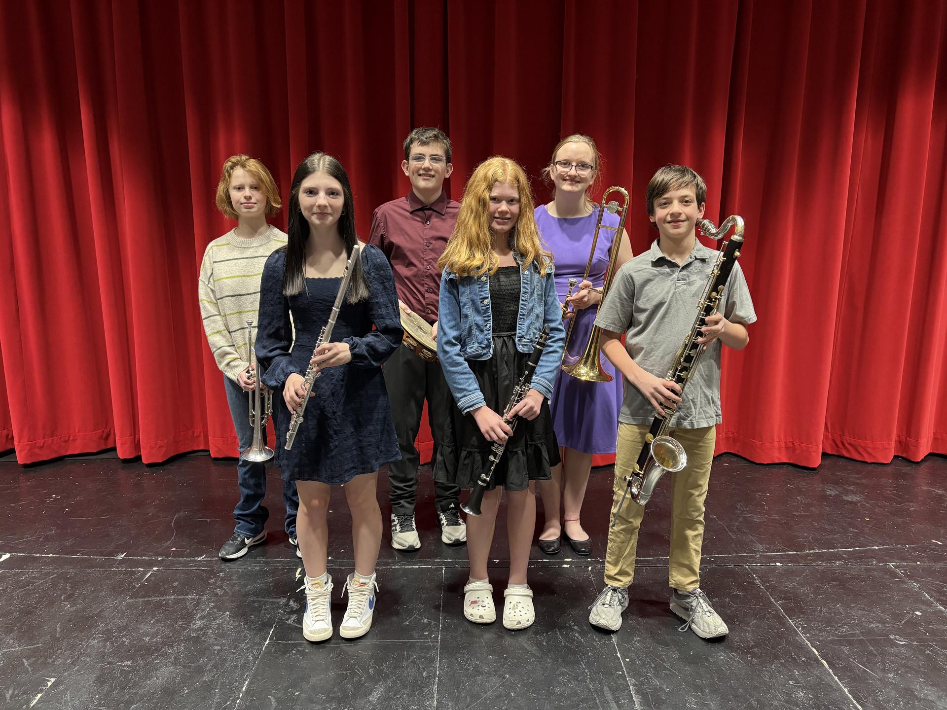 Row 1: Willow Hilsabeck, flute; Brynley Offerman, clarinet; Jax Elbert, bass clarinet